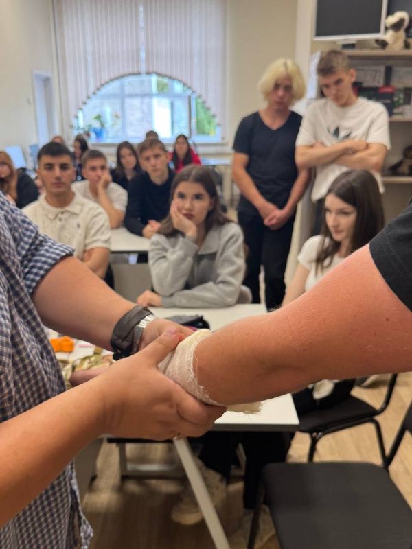 Обучающие узнали о значении средств, находящихся в аптечке, о современных средствах и способах остановки кровотечения, транспортировки раненого и обеспечения его безопасности.